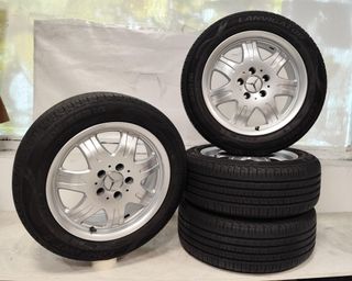 Juego de cuatro ruedas Mercedes ML. - Llantas aluminio originales de 5 radios en 16 pulgadas. - Medida: 255/65-16. - Marca de neumáticos: Dunlop Grandtrek.
