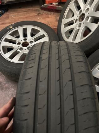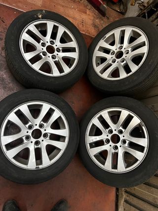 Juego de 4 llantas de aluminio de 16 pulgadas para BMW. Neumáticos del 2022 al 50% Solo entrega en mano - Diseño de 5 radios dobles. - Acabado plateado. - Compatibles con varios modelos BMW.