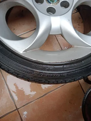Llanta de aluminio de 17 pulgadas con neumático incluido 225/45/R17. - Diseño de 20 radios. - Acabado plateado. La tenía como rueda de repuesto para mí Alfa Romeo 166, pero nunca llegué a utilizarla, por lo que el neumático aunque es viejo, esta perfecto, nunca a rodado. Siempre ha estado guardada en el maletero.