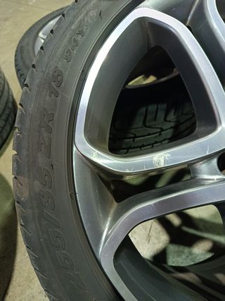 Juego de llantas negras de 18 pulgadas con diseño deportivo. Dos neumáticos a medio uso y dos bastante gastados. - Diseño multirradio. - Acabado brillante. - Centro con logo Mercedes-Benz. Tienes algun roce y arañazo. Estaban motadas en Mercedes Viano.