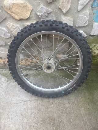 Rueda delantera para moto CRF de 21 pulgadas. - Llanta de aluminio. - Radios de acero inoxidable. - Neumático todoterreno.
