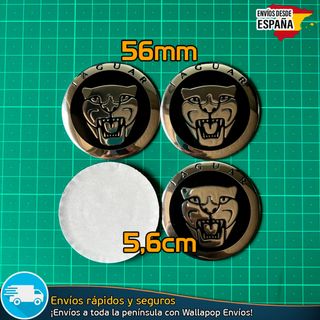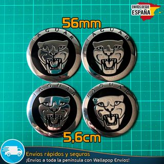 Pack de 4 pegatinas adhesivas de 56mm para tapas centrales con el emblema, insignia, logo, anagrama de Jaguar. Ideales como recambio para los centros de ruedas, tapabujes, tapacubos y llantas de tu vehículo. Compatibles con varios modelos de Jaguar como: E-Pace, F-Pace, F-Type, i-Pace, Serie XJ, XK, S-Type, XE, XXF, XJ, X-Type. Contenido del paquete: 4 pegatinas de 56 mm con el emblema de la cabeza de Jaguar. Material: Aluminio con relieve de excelente diseño calidad y resistencia. Color: Jaguar cromado con fondo negro y borde cromado