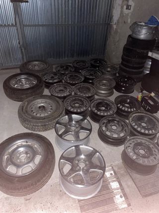 Llantas de 15 pulgadas color aluminio con algún toque (poca cosa). Con 2 neumáticos de invierno nuevos y otros 2 normales al 80% de vida. Se regalan fundas.