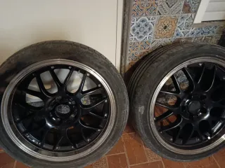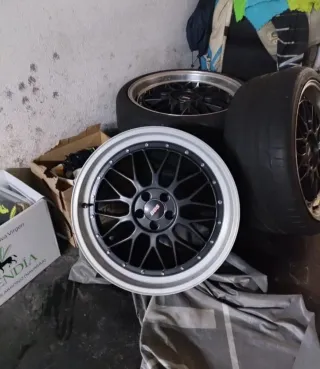 Juego de llantas réplica con diseño deportivo. 19 pulgadas Estaban montadas en un Golf 4 Una no tiene neumático - Diseño multirradio. - Acabado en negro y aro pulido. - Logo BBS en el centro. No hago envios