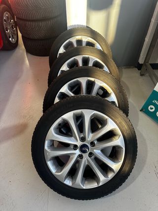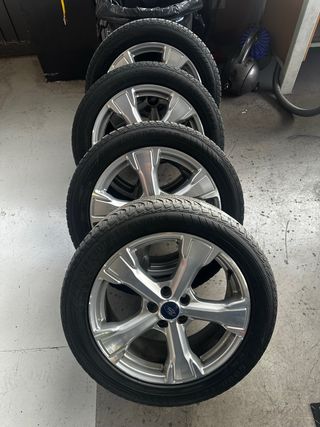Juego de 4 llantas de aleación de 18 pulgadas para Ford. Vienen de un Kuga ST - Diseño deportivo de 5 radios. - Acabado plateado brillante. - Incluye tapones centrales con logo Ford. - Neumaticos GoodYear 4 estaciones en PERFECTO ESTADO 235/50 R18 101V