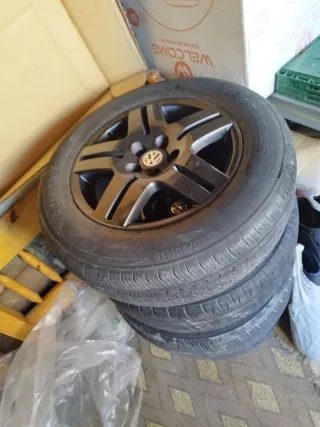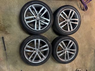 Juego de llantas de aleación con neumáticos. - Diseño deportivo de 5 radios. - Compatibles con Audi, Volkswagen Golf y Seat León.