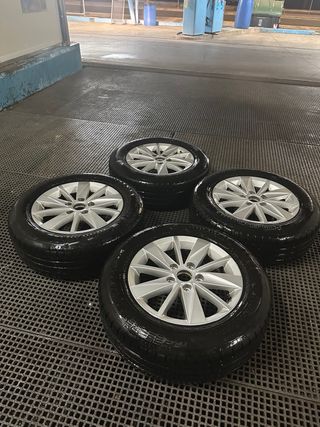 Juego de 4 llantas de aleación de 15 pulgadas para Volkswagen Golf. Diseño deportivo y elegante. - Diámetro: 15 pulgadas. - Compatibles con Volkswagen Golf. - Incluye los neumaticos, también practicamente nuevos.
