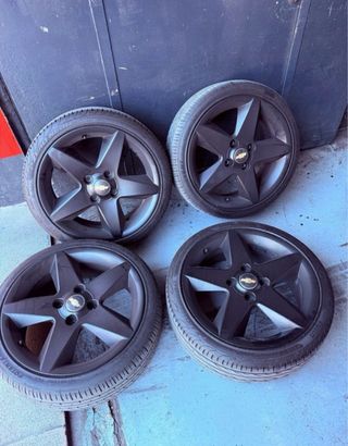 Llanta de aleación con diseño deportivo. - Color oscuro. - Diseño de 10 radios. 4 Llantas con su neumatico,uno esta desgastado los otros estan bastante bien. 4 llantas UNIVERSALES