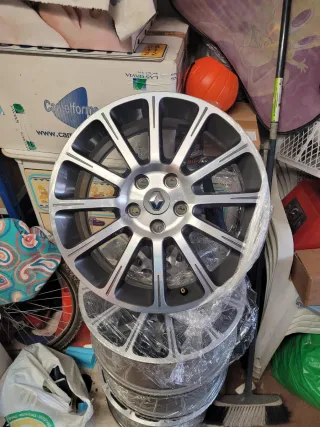 Juego de 4 llantas de aleación aluminio para Renault Clio, sport fase 3. Diseño deportivo y moderno. Como nuevas. - Acabado plateado - Diseño multirradio. - Logo de Renault en el centro.
