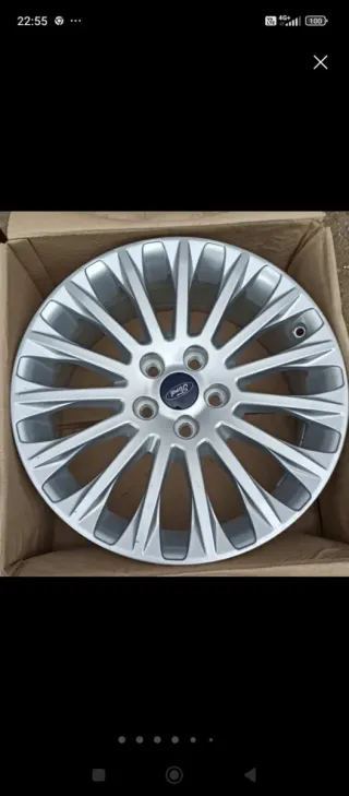 Juego de llantas de aleación para Ford Fiesta. Diseño deportivo y moderno. - Llantas de aleación. - Diseño de 5 radios dobles. - Logo de Ford en el centro.