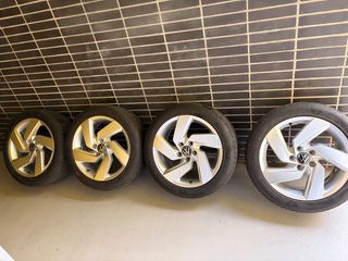 Juego de 4 llantas impecables con neumáticos para VW Golf 8. - Originales VW con su logo - Tamaño 17 "pulgadas” - Diseño deportivo. - Neumáticos de calidad, apenas usados - Negociables