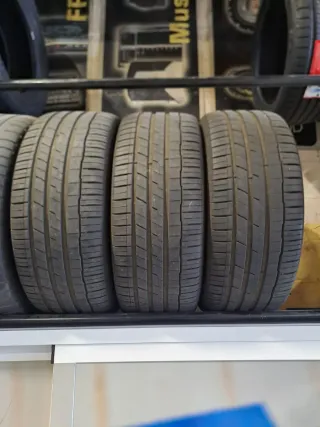 Juego de 4 llantas de 19 pulgadas.doble medida delanteras 245/35/19 Traseras 265/30/19 Neumáticos al 80% - Diseño deportivo plateado. - Centro con logo a color.