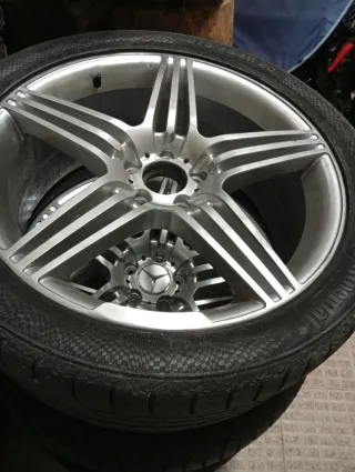 Juego de llantas de 19 pulgadas con anclaje 5x112 et35 9.5j las 4 llantas. Neumaticos 225 35 r19 al 80% vida útil. - Diseño deportivo y moderno. - Acabado plateado brillante. Acepto cambio por otras llantas 5x112 en 19"