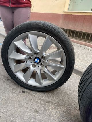 Juego de llantas de aleación BMW de 17 pulgadas. - Diseño deportivo de 5 radios. - Logo BMW central. Los neumáticos están para cambiar