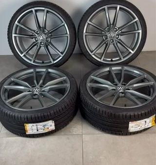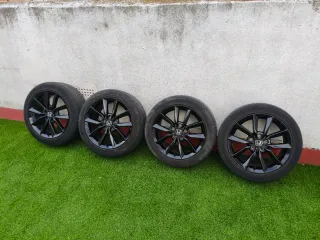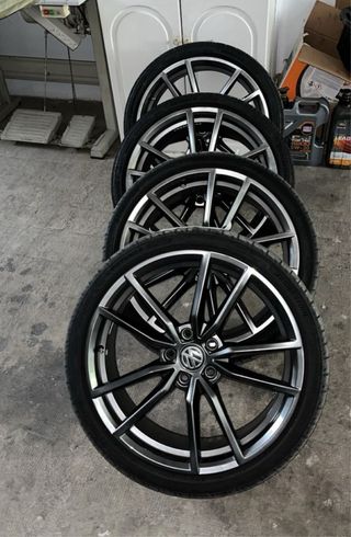 Juego de llantas de 18 pulgadas para Volkswagen Golf. Incluyen neumáticos Goodyear. - Diseño deportivo en color negro brillante. - Borde exterior pulido. - Montaje para 5 tornillos. Un mes y medio de uso tanto las llantas como los neumáticos.