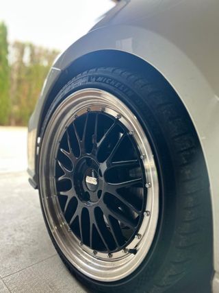 Juego de 4 llantas tipo BBS LM de 18 pulgadas con anclaje 5x112. - Diseño deportivo y elegante. - Acabado plateado con detalles pulidos. - Tapas centrales rojas con logo BBS. - medidas de las llantas 18x8 et40 5x112 buje de 66.6 Certificados VIA y JWL Se dan con neumaticos Vitour Tempesta enzo semislick nuevos en medida 225/40 r18 las cuatro misma medida Pongo fotos de como quedan en mini No mareos por favor, llevaran de 1500km ya que el coche lo vendi y le quite las llantas Si buscas otro modelos de llantas entra en mi perfil de wallapop, sino los tengo escríbeme por privado👌