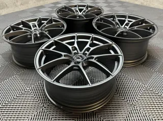 Juego de 4 llantas de aleación de 18 pulgadas de la marca Strom, modelo STR F1. - Diseño deportivo de 5 radios dobles. - Acabado en gris oscuro con detalles pulidos. - Compatibles con varios modelos de coche (verificar compatibilidad). - Incluye tapas centrales con logo.