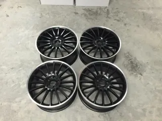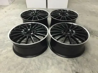 Set de 4 llantas de 19 pulgadas con un diseño deportivo inspirado en el estilo C63 AMG. El acabado es en negro brillante con el borde pulido. Especificaciones técnicas Medidas: Delanteras: 8.5J x 19” Traseras: 9.5J x 19” Tornillería: 5x112 ET / Offset: Delante ET44 Detrás ET67 (la configuración típica AMG en 19”) Buje: 66.6 mm Acabado: Negro satinado con cantos pulidos Estado: Muy buen estado. Sin golpes ni llantas dobladas. 🚗 Compatibilidad Compatibles con gran parte de la gama Mercedes 5x112: ✔ Clase C (W204, W205) ✔ Clase - Diámetro: 19 pulgadas. - Diseño deportivo. - Acabado bicolor: negro brillante y borde pulido.
