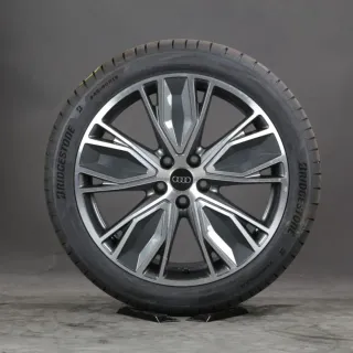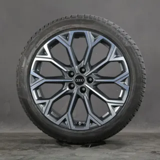 Juego de llantas completas para Audi Q5. - Diseño deportivo de 5 radios dobles. - Acabado plateado. - Incluye neumáticos.