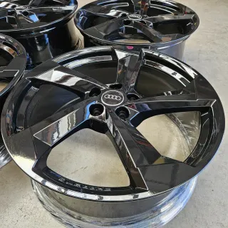 Juego de 4 llantas de 19 pulgadas con un diseño deportivo. Medida: 8.5J x 19” Tornillería: 5x112 ET / Offset: ET35 (la medida más montada en el estilo RS6 19”) Buje: 66.6 mm Acabado: Negro brillante (piano black) Estado: Muy buen estado, sin golpes ni llantas dobladas. - Estilo RS6. - Acabado bitono (gris oscuro y pulido). - Diseño moderno y agresivo.