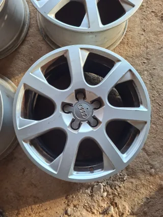 Juego de 4 llantas Audi de 17 pulgadas. Se hacen envios por wallapop, en dos anuncios. - Diseño deportivo de 5 radios dobles. - Acabado plateado. - Logo de Audi en el centro. - Buje 66,6mm.