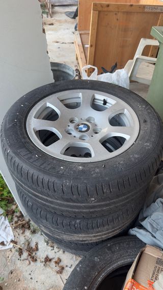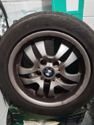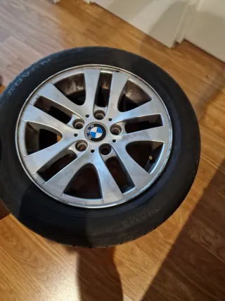 Llanta de aleación BMW con diseño deportivo. 4 llantas para neumaticos 205/55 R17, dos de ellas con neumaticos en buen estado al 50% 205/65 R17 100Y de marca Vredestein. - Acabado plateado. - Logo BMW central.