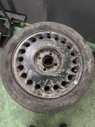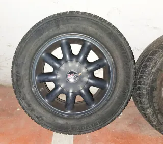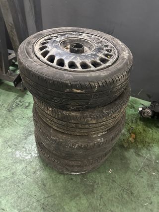 Juego de 4 llantas R14, neumáticos viejos pero todavía podrían servir. - Diseño de 9 radios. - Centro con logo deportivo.