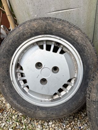 Juego de dos llantas de 13 pulgadas con diseño de 3 tornillos. - Compatibles con modelos AX y 106. - Diseño deportivo plateado. - Como nuevas -Se entregan con neumaticos michelin viejos pero que valen para mover el coche -Por 10 euros mas te llevas llanta de chapa