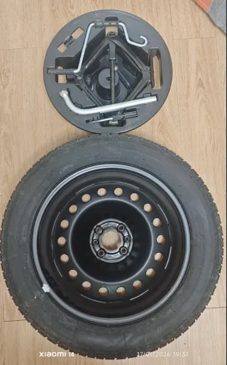 Kit de rueda de repuesto Michelin sin usar, tamaño 205/55 R16. Incluye gato y herramientas. A recoger, no sé envía. - Llanta de acero. - Neumático Michelin. - Gato elevador. - Llave de cruz.