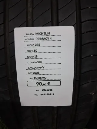643180912 ✅Venta de neumáticos seminuevos. 📦Envío en 24/48H a toda España. ✅Puede comprar de forma segura. ✅Neumáticos nuevos y seminuevos. ✅ Trabajamos con todas las marcas. ✅ Todas las medidas disponibles. ✅ Neumáticos revisados y garantizados . ✅ Montaje, equilibrado y válvula nueva 15€. "POR NEUMATICO" ✅ Alineación desde 40€ DOT.2021 Referencia: 2026385 Llantas, ruedas, gomas, coches, llantas, ruedas, motor, turbo, taller, mecánica #USADAS #SEMINUEVAS #SEGUNDAMANO #OCASION 155/80R13 175/70R13 165/65R14 185/60R14 185/65R14 185/60R15 195/65R15 205/60R15 195/55R16 205/55R16 225/60R16 235/60R16 255/