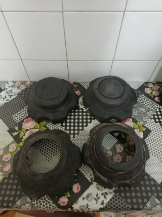 Juego de 4 tapas para cubos de rueda de Nissan Patrol GR Y61. Se encuentran usadas, todas las pestañas intactas. - 2 tapas con logo Nissan ruedas traseras. - 2 tapas sin logo ruedas delanteras (cubos de rueda automáticos). - Material: Plástico resistente. No hago envíos.