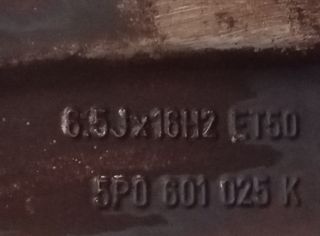 SEAT ALTEA XL (5P5 5P8) 1.6 Año 2006 llanta. Referencia 5P0601025E. Observaciones 6.5jx16h2et50 5p0601025e ancho 6.5 diametro 16 distancia entre tornillos 5 x 112 mm diametro de buje 57.1 mm aluminio 7p rozada. Código interno 5287722.