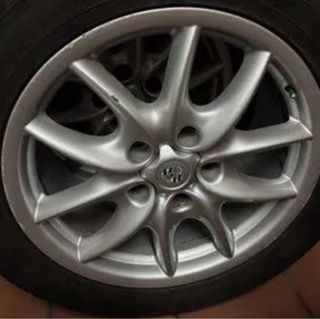 Llanta de aleación plateada con neumático montado. El diseño de cinco radios le da un aspecto deportivo. Maxxis Premitra 5 (una marca de gama media-buena, conocida por su buen agarre en mojado). 195/50 R15 - Llanta de aleación. - Neumático incluido. - Diseño de 5 radios. Dispongo de 4