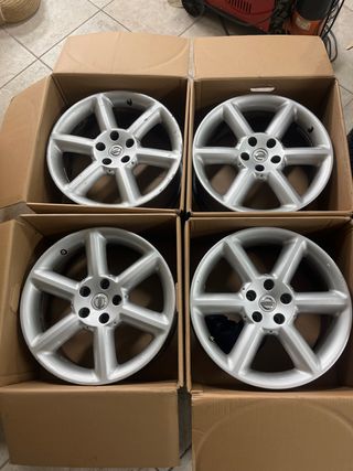 Vendo 4 llantas 18x8 version touring de nissan 350Z o tornilleria japo 5x114.3 buje 66.1 Se encuentran en buen estado menos 1 que esta mas marcada por lo demas de lujo