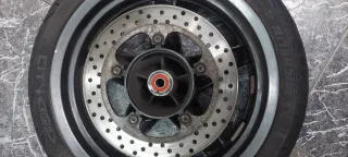 Llanta delantera para Triumph Street Triple. Se vende tal como se ve en las fotos. Precio negociable. - Llanta de aleación negra. - Disco de freno incluido. - Neumático Michelin Road 5 120/70 ZR 17.