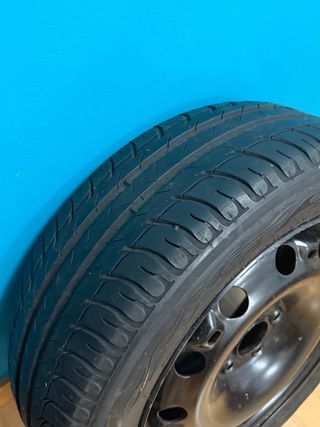 Se venden cuatro ruedas completas con llantas de acero. - Diámetro de llanta: 15 pulgadas. - Diseño de 5 agujeros. - 2 Neumáticos Bridgeston en buen estado 70% aproximadamente y las otras dos para cambiar Medida de los neumáticos 195/65/R15. 91V Eran de una Volkswagen Caddy DISPONIBLES EN SOPUERTA