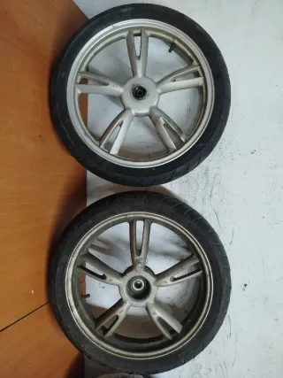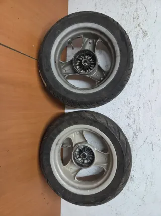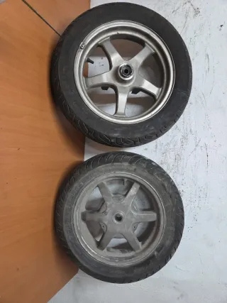 Se venden llantas con neumáticos de scooter. - Llantas de aleación. - Neumáticos en buen estado.