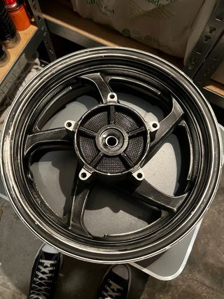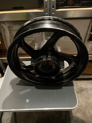Llanta trasera para Piaggio X-Evo. - Diseño de 5 radios. - Color negro.