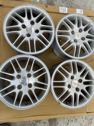Cuatro llantas de 15 pulgadas para Ford. Están en buen estado, aunque muestran señales normales de uso. - Son llantas momo las montaba un escort mk2 rs turbo. Valen para fiesta. Los neumáticos se han de cambiar. Incluye los centradores de aluminio