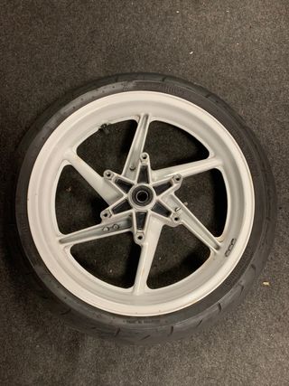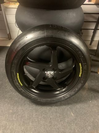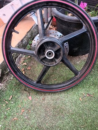 Llanta en perfecto estado con neumatico Es de honda VFR La tengo de decoración con un neumatico slik 180