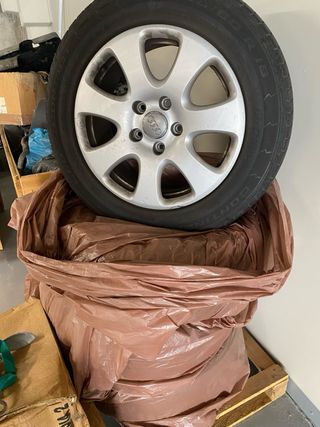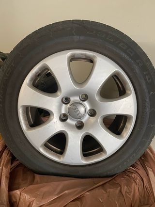 Juego de llantas de aleación para Audi y otros modelos del Grupo VAG. ( Los neumaticos los regalo.. nose como están) - Diseño deportivo de 5 radios. - Acabado plateado. - Logo de Audi en el centro.