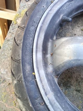 Rueda vespa pk 125 75 o otras, la llanta esta bien sin bordillazos, flanco bien, el neumatico es viejo pero puede funcionar, habría que mirar fuga de aire.