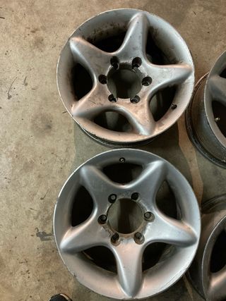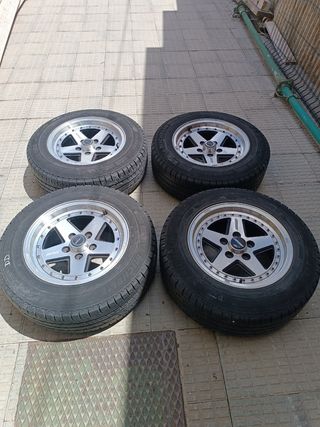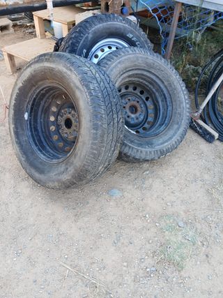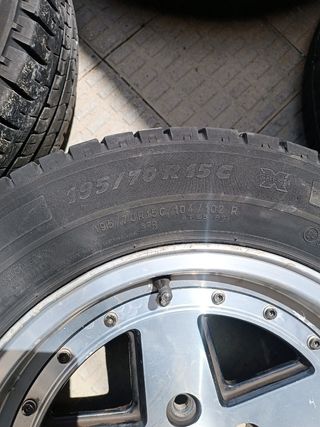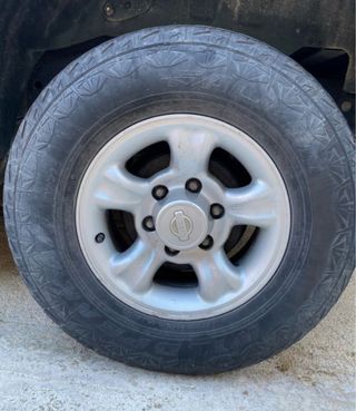Vendo llantas usadas para Nissan Terrano II. Están en buen estado, aunque muestran señales normales de uso. 235-75/15R - Juego de 5 llantas. - Llantas de aleación de aluminio 1-neumatico al 100% 2- neumaticos 50% 2- que aun pueden usarse algo estan desgastados por el interior SOLO SE VENDEN LLANTAS Y NEUMATICOS NO LAS TAPAS CENTRALES