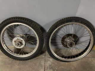 Juego de llantas para Puch Condor III. - Llanta delantera con tambor de freno. - Llanta trasera con disco de freno.