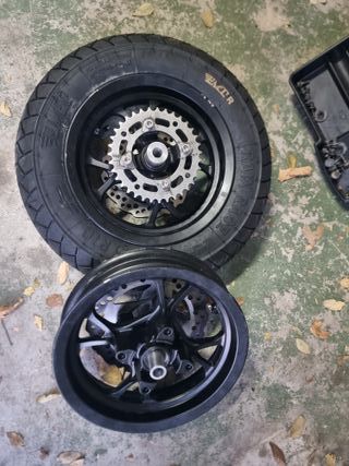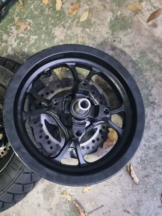 Llanta de 10", estan nuevas, venian con la moto que compramos en marzo del 2025 y directamente las cambiamos por otras mas ligeras. se le montaron neumaticos de agua y no se llegaron a usar.