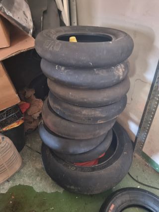 Neumatico slick PMT a medio uso, para llanta de 10", las medidas son de 100 y de 120. Perfectos para entrenar y para hacer algunas carreras.