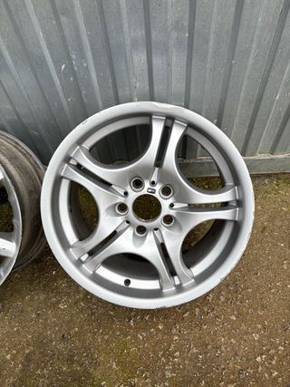 Juego de llantas de aleación BMW en 18 pulgadas.e60 - Diseño deportivo. - Acabado plateado.son originales de doble medidas Delanteras 225-40-18 Traceras. 255-35_18 Los neumáticos están al 90%