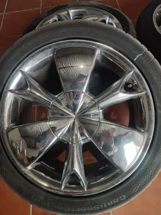 Se venden o cambian 4 llantas 17" 4x100 cromadas, casi en perfecto estado. Dos tienen neumáticos 215/45/17. Aceptaría cambio por otras llantas minilite, targa, válidas para seat 124de la epoca. negociable.