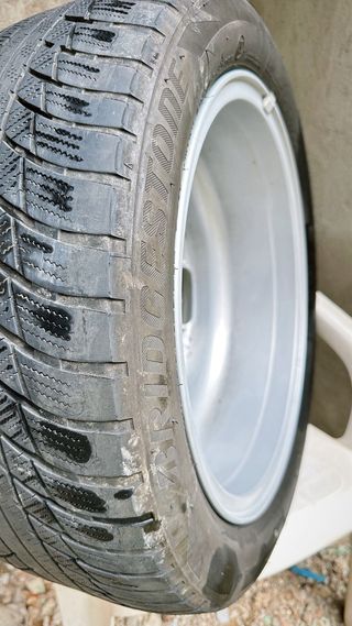 Juego de llantas con neumáticos en buen estado. - Medida de neumático: 205/55R16. - Diseño de 5 radios plateados. - Incluye tapacubos central con logo.
