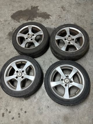 Juego de 4 llantas de aleación TP. Incluidos neumáticos inmortales que nunca se desgastaron ni un mm. Si llueve es un auténtico festival. - Diseño de 5 radios. - Compatibles con modelos PSA (Peugeot 306). - Acabado plateado.